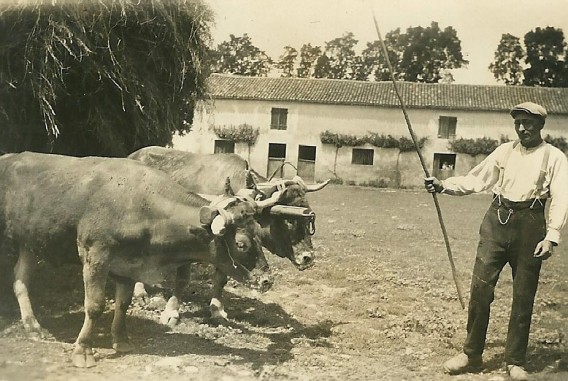 Charette de foin tirée par les boeufs avec Roger, le grand-père de François