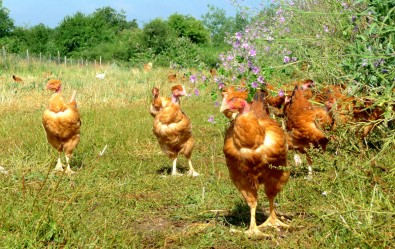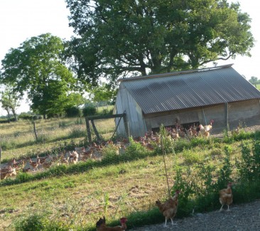 Les poulets se partagent plusieurs poulaillers ayant chacun deux vastes parcours herbeux, et passent la journée au grand air. Chaque matin, Bénédicte leur ouvre le poulailler !